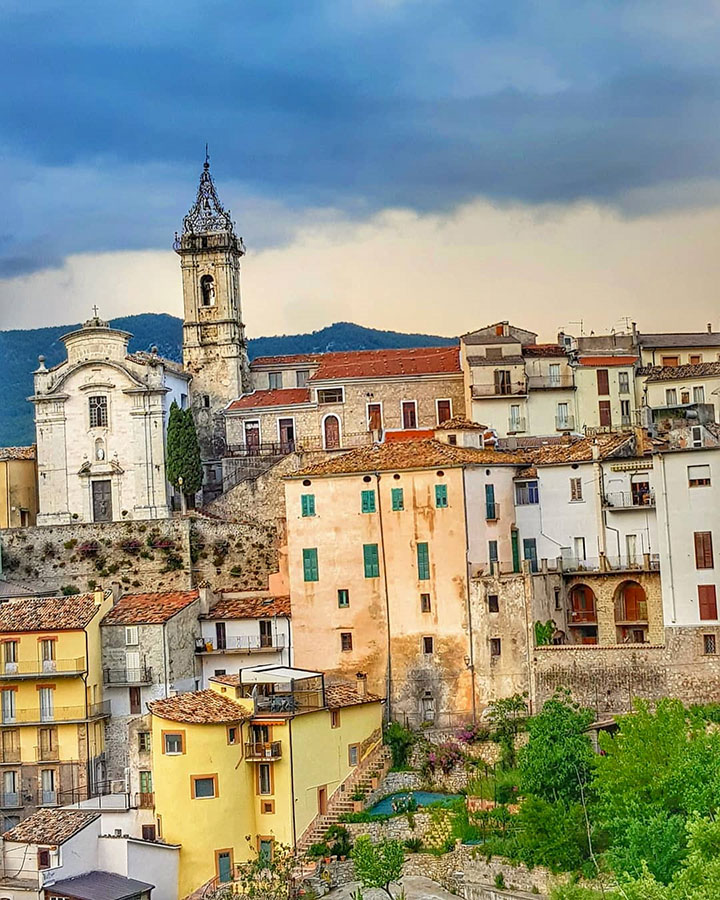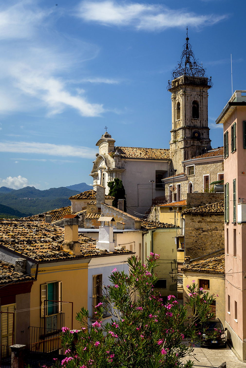The hill of Colledimezzo is a solid limestone rock, so of course stone is plentiful and most of the houses have been made from this and the local surrounding stone. The houses in the village are connected by a network of streets that are all stepped to accommodate this large rock, many of the houses are not accessible by car but originally mule would have been an option of transport.