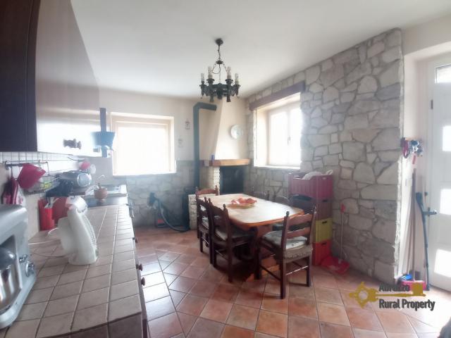 The house stands on three levels, the main entrance is located on the ground floor, and opens into a hallway where we find a staircase that leads to the first floor. Here we find a large and bright living room, with a window and a balcony. From the balcony we can enjoy a beautiful panoramic view of the surrounding hills and countryside. Adjacent to the living room there is a large kitchen with a perfectly working stove and a bathroom with a shower.