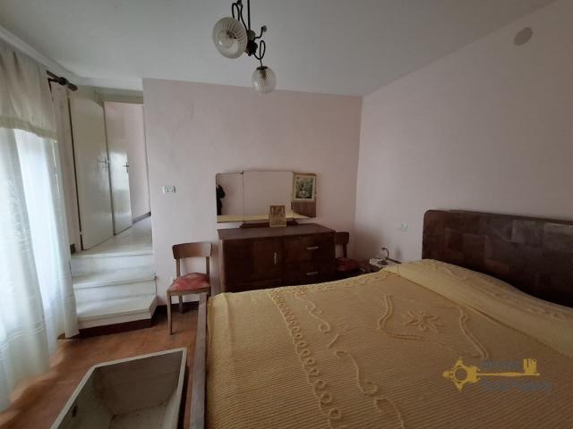 The house stands on two levels. The main entrance is situated on the first floor and it opens immediately into a habitable kitchen with a ceramic sink. On the same floor we find also a living/dining room with vaulted ceilings and a bathroom with a shower.
