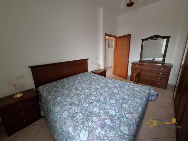 The internal staircase leads us to the first floor where we find the entrance to the first apartment. As we enter, we immediately find a large open space kitchen/living room with a balcony and a thermo fireplace. Proceeding there is a corridor that has access to a large terrace with panoramic view of the surrounding hills. The same floor also provides a double bedroom, a single bedroom and a full bathroom with shower facilities.