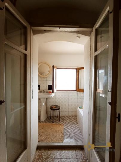 The main entrance opens into a small hallway where we find the staircase that leads to the first floor. On the ground floor we find one room with independent access from the main street and a large living space with balcony overlooking the countryside. On the balcony is located an extra toilette.