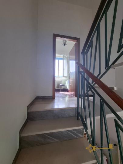 A comfortable marble staircase takes us to the second floor composed by a master bedroom with a panoramic terrace overlooking the surrounding hills and village, a single bedroom with a storage space and a full bathroom with a bathtub. Next to the single bedroom there is a second entrance of the house, this allows the possibility to change the layout of the house.