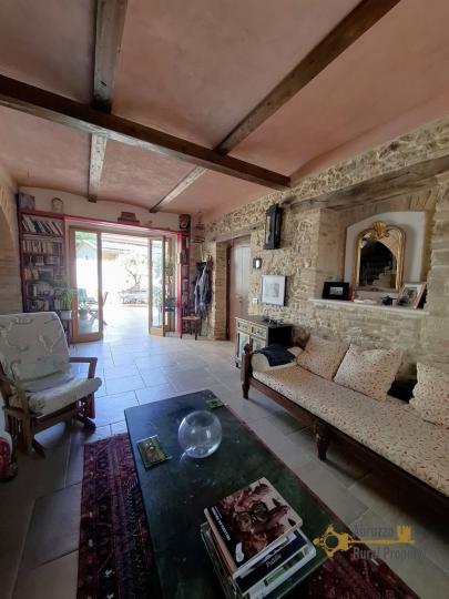 As we enter, we find a large living and kitchen area with beautiful, exposed stone and original wooden beams. This rooms avails of a sitting corner and a fully equipped kitchen with induction cooker and a large wood burning stove in perfect working conditions used for cooking and for the central heating system.
