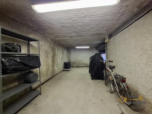 The building is all fenced. The entrance is not shared with the other apartments. The main door opens into a landing where we find a pellet stove. In front of the main entrance there is a large living room currently used as a storage room. On the right, we find a large open space kitchen/ dining room with a fireplace, two windows and a pantry space with a window.
