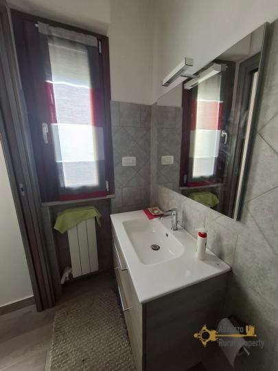 A comfortable staircase takes us to the first floor where we find a single bedroom with a balcony and the access to the attic floor, still in raw state, currently used as storage space. Proceeding we find a laundry room, a full bathroom with bathtub, and a second bedroom with a window. Completes the floor the master bedroom with a balcony with the same panoramic view.