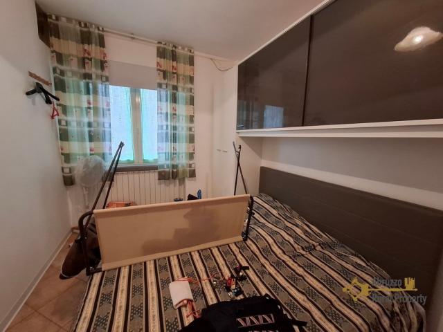 From the living room we can reach the sleeping area where we find a hallway with a pellet stove connected to the central heating system. Proceeding we find a full bathroom with bathtub, the master bedroom and a second double bedroom both with access to a long balcony overlooking the garden.