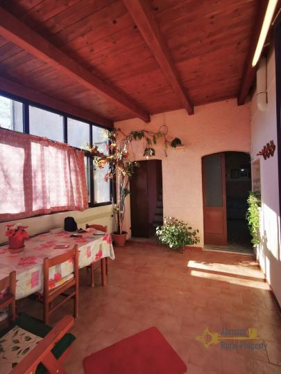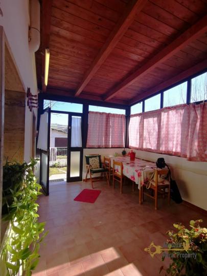 The house is completely made of stone, the entrance is covered by a wooden veranda with double glazed windows, this area is very cozy and full of natural light, it is the perfect spot to relax during the winter days.