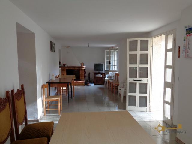 The house enjoys a large fenced garden with barbecue facilities, a well and also a paved area. On the back of the house we find a large olive grove that reaches a small woodland with oak trees. This small woodland is part of the property, it borders with stream of natural spring water.