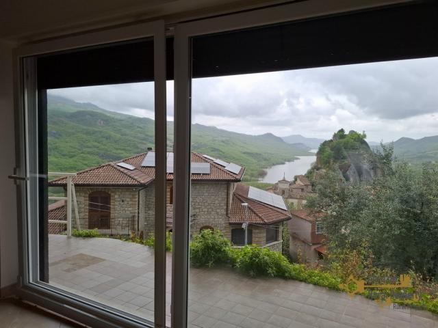 The open space avails of a fully furnished kitchen and a bright dining and living area with fireplace. This large living space enjoys a stunning view of the spectacular village and the Bomba Lake with a comfortable terrace with barbeque area and dining table.