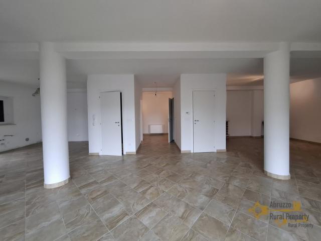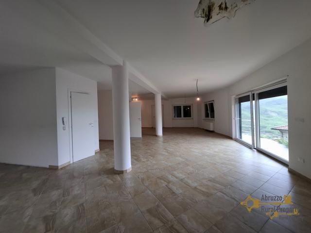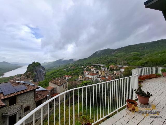 On the first floor we find the larger, main unit with a fantastic open space of 85 sqm with direct access on the large panoramic terrace overlooking the lake of Bomba and the Rocca of Pietraferrazzana, a large rock that is the symbol of the village.